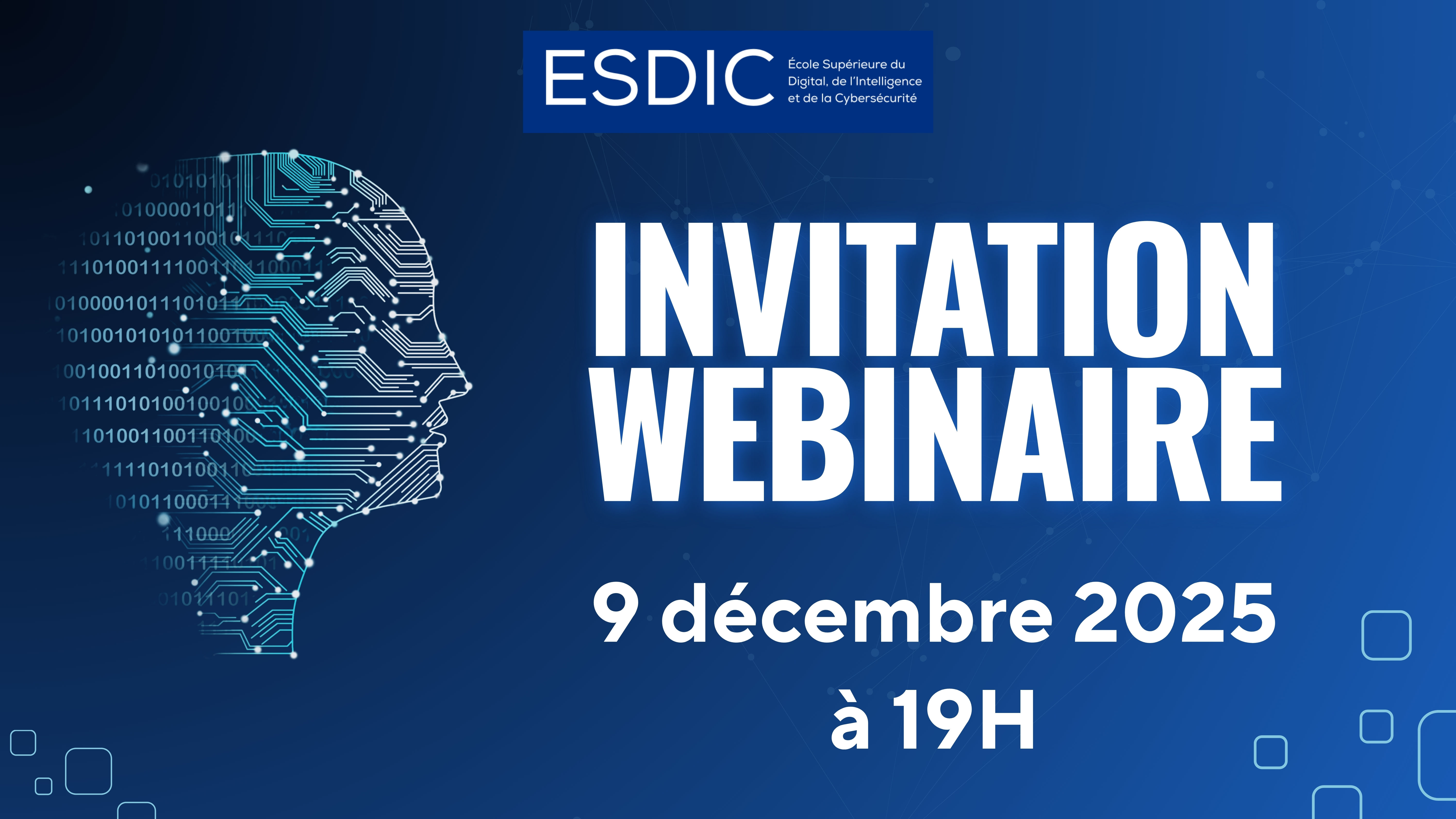 Nous avons le plaisir de vous inviter à notre prochain webinaire de présentation de l’ESDIC – École Supérieure du Digital, de l’Intelligence et de la Cybersécurité.